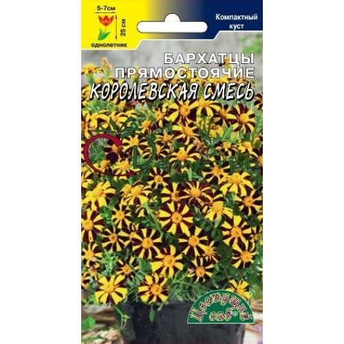 Одна из самых уникальных окрасок у отклоненных бархатцев! Лепестки махровых соцветий в веселую полоску придадут особое очарование цветнику. С июня до заморозков соцветия сплошь покрывают растения, украшая клумбы, горшки и балконнные ящики. Посев апрель-май, на рассаду или непосредственно в грунт. Растения, выращенные из рассады, зацветают раньше и дольше цветут. Семена высевают в легкую питательную почву. Всходы появляются через 7–14 дней при оптимальной температуре 20...22°С. Высадка в открытый грунт, когда минует угроза заморозков. АГроТЕХНИКА Бархатцы выращивают как рассадным способом, так и прямым посевом семян в грунт. Глубина заделки семян не более 0,5–1 см. В грунт рассаду высаживают, когда минует угроза заморозков. Бархатцы неприхотливы, им подходит любая почва на солнечном участке или в полутени