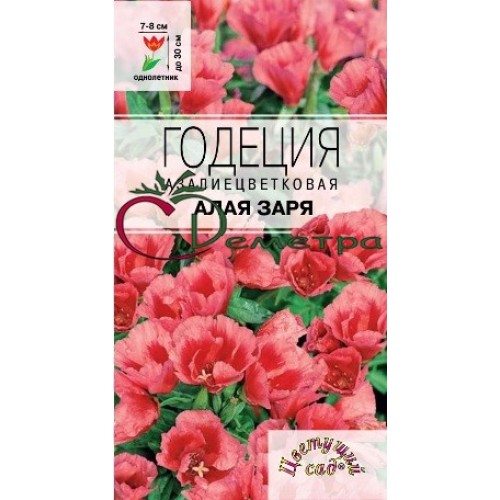 Сорт отличается уникальной колористикой — цветущий куст напоминает яркий костер. Цветки чашевидные, крупные — d=7–8 см, собраны в соцветия на концах побегов. Лепестки с атласным блеском. Растения компактные, прямостоячие, высотой около 30 см, хорошо кустящиеся, обильно цветущие. Период цветения продолжительный, с третьей декады июня до глубокой осени. Обильности и продолжительности цветения способствует удаление увядающих цветков. Рекомендуется для солнечной клумбы, бордюра, для контейнеров и горшков. Срезанные соцветия хороши в небольших букетах. АгроТЕХнИКА Выращивают прямым посевом семян в грунт на постоянное место в конце апреля начале мая или рассадным способом. Глубина заделки семян не более 0,5 см. Годеция предпочитает суглинистые почвы средней плотности. Полив обильный на протяжении всего периода вегетации