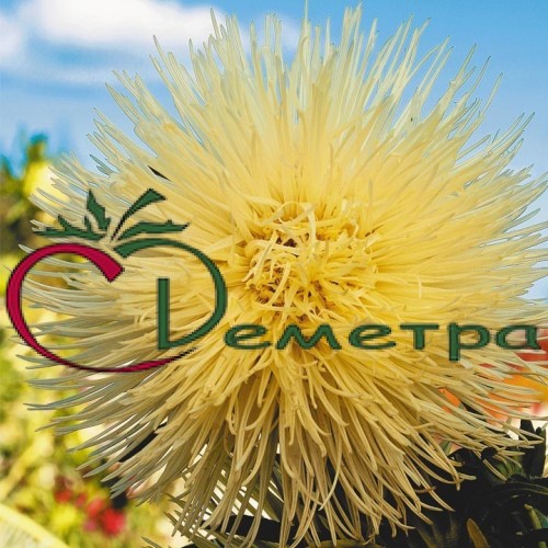 Куст цилиндрической формы, маловетвистый, формирует до 10 соцветий. Соцветия плоские, махровые, очень изящные, диаметром 16 см. Лепестки язычковых цветков свернуты по длине в трубку. Используется на срезку