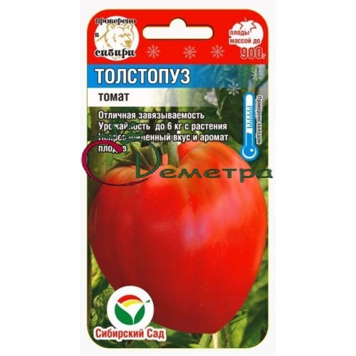 Адаптирован к условиям Сибири, устойчивый к жаре и холоду, отлично формирует крупные плоды до верхних кистей.Растение высотой до 2-2,2м. Плоды очень крупные почковидной формы, массой до 900г, мясистые, малиново-розовые, с хорошим вкусом и ароматом. Дегустационная оценка высокая - 4,5 балла. Идеален для летних салатов, пюре и соков. Плодоносит до поздней осени. Урожай до 7 кг с растения. Сорт хорошо реагирует на полив и подкормки комплексными минеральными удобрениями. При необходимости защиты от фитофтороза и альтернариоза рекомендуется проводить профилактические обработки томатов препаратом «Ордан». Первое опрыскивание - в стадии 4-6 настоящих листьев, последующие - с интервалом 14-20 дней, заключительное не менее чем за 20 дней до сбора плодов.
